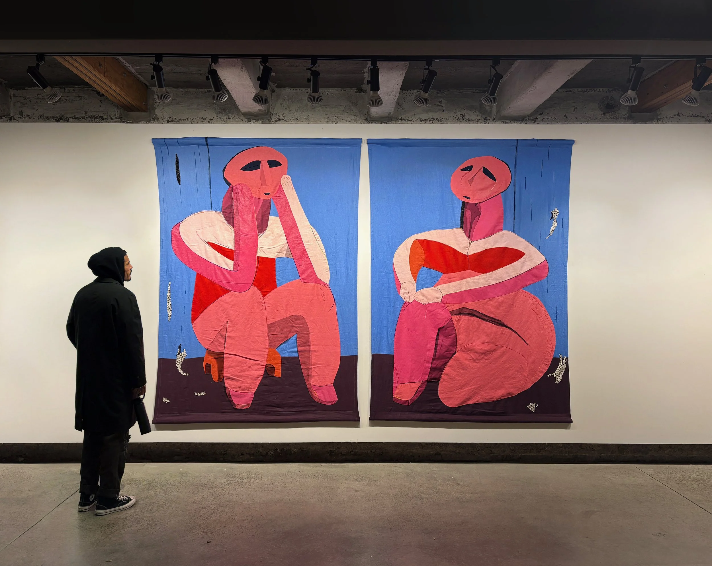 Embroideries with sometimes beads; 30 x 22.5 inches (76.2 x 57 cm)